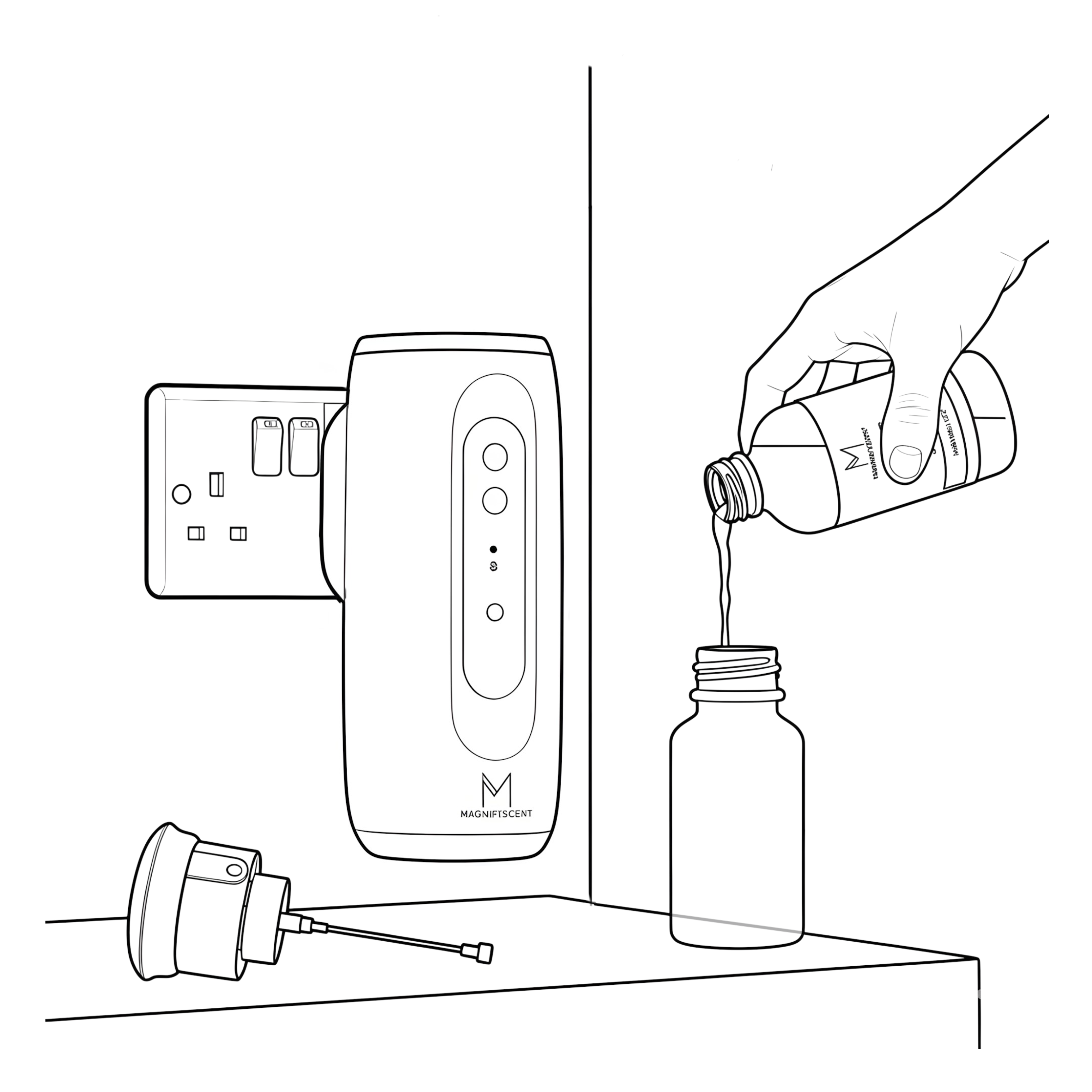Pour about 1/3 of Magnifiscent Diffuser Cleaning Solution into the empty diffuser bottle.